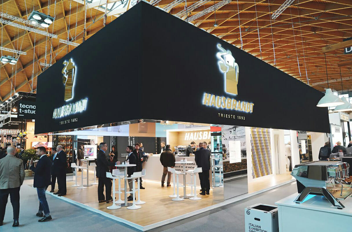 Fin dal primo sguardo lo stand – che accoglie tutte le eccellenze del Gruppo – si presenta con un carattere deciso: dall’espressione artistica di Martino Zanetti nasce un ambiente dominato dall’essenzialità e dall’eleganza del bianco e nero, decorato con libere e gioiose pennellate a valorizzare l’iconica moka in versione rosso fiammante. Questa scenografia accoglie i visitatori nel mondo Hausbrandt, con tutti i prodotti in evidenza sia in degustazione sia protagonisti di appuntamenti dedicati.