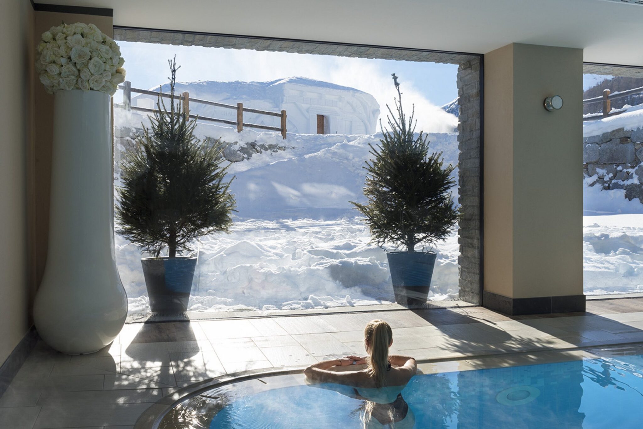 La spa del Lac Salin rappresenta uno degli spazi più iconici dell’hotel. Il percorso wellness si sviluppa tra piscine interne panoramiche, zone relax, saune e trattamenti che utilizzano erbe alpine. L’obiettivo è offrire un’esperienza che integri natura, benessere e autenticità.
