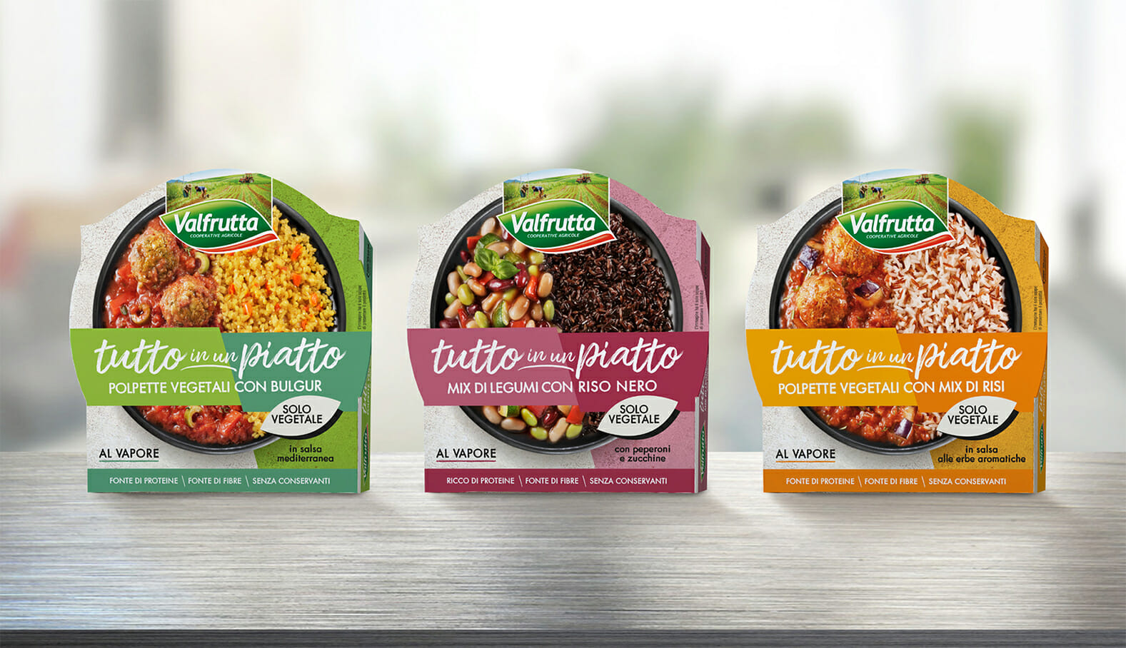 TUTTO IN UN PIATTO VALFRUTTA è una linea di 3 ricette ad alto valore aggiunto che coniugano benessere e servizio, con ingredienti sani e naturali.