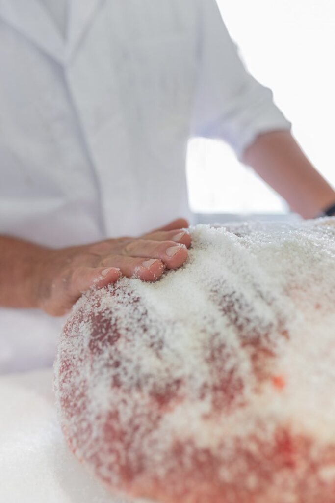 “Parliamo di 10 cosce lavorate a settimana – prosegue Mattia – non ne facciamo di più. Del resto, il nostro marchio significa artigianalità, nulla di automatizzato, nessuna stagionatura climatizzata; le nostre cosce vengono lavorate come una volta e poi trasferite per essere stagionate in un ambiente non climatizzato; forse l’unico ciclo produttivo ancora rimasto del tutto come una volta, e qui è veramente il famoso vento Marino delle colline di Parma (divenuto noto in seguito a una pubblicità del Consorzio del prosciutto di Parma) che stagiona il nostro prosciutto insieme al sale e al tempo.