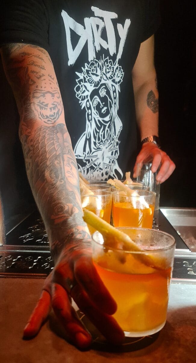 Ecco perché il Dirty bisognava inventarlo. Fino alle 4 (e anche oltre, se c’è gente) qui si beve, si mangia e si sta in compagnia. Spesso, anche con i bartender degli altri locali che, a una cert’ora, tirano giù la serranda e buonanotte. Niente alta miscelazione o menu gourmet: in lista ci sono cocktail classici, otto signature (i nomi? Da 1… a 8) e un paio di twist, tutti pensati per l'”high volume”, ovvero per servire velocemente la clientela quando il locale è pieno di avventori assetati (“a volte ci troviamo a dover accontentare 100/200 persone contemporaneamente”, dice Farulla).