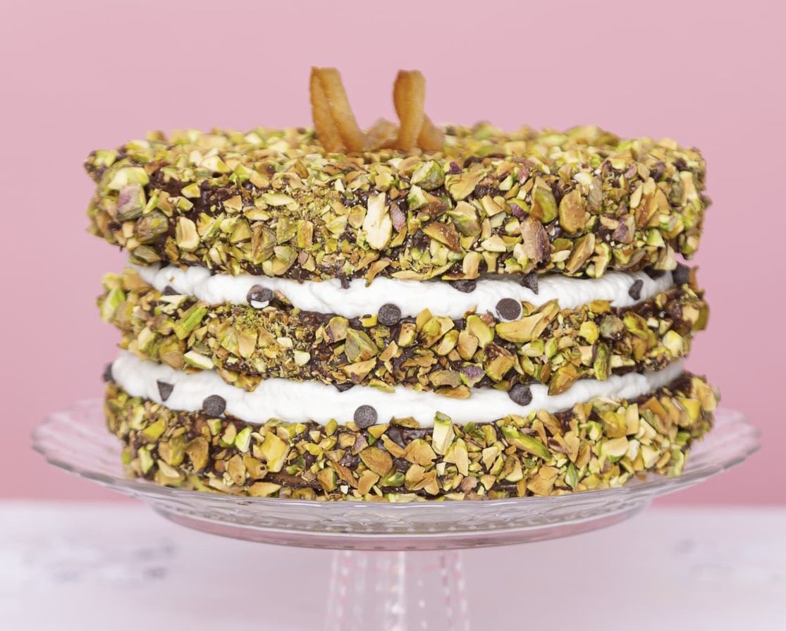 Per oggi vi propongo una torta a strati, profumata all’arancia, con ricotta, cioccolato e ricoperta di @pistacchiamericani. Sapevate che sono considerati una proteina completa e sono ricchi di proprietà nutrizionali ottime per il nostro organismo?