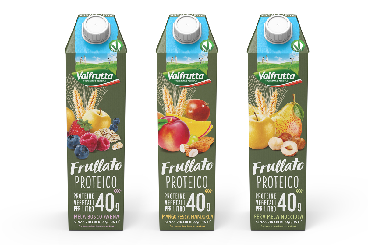 In un periodo in cui l’attenzione di un consumatore consapevole è massima nei confronti di una corretta e sana alimentazione e dove è crescente la tendenza al consumo di proteine a base vegetale, Valfrutta lancia una nuova ricetta raddoppiando il contenuto di proteine: Valfrutta FRULLATO PROTEICO 40 grammi/litro di proteine