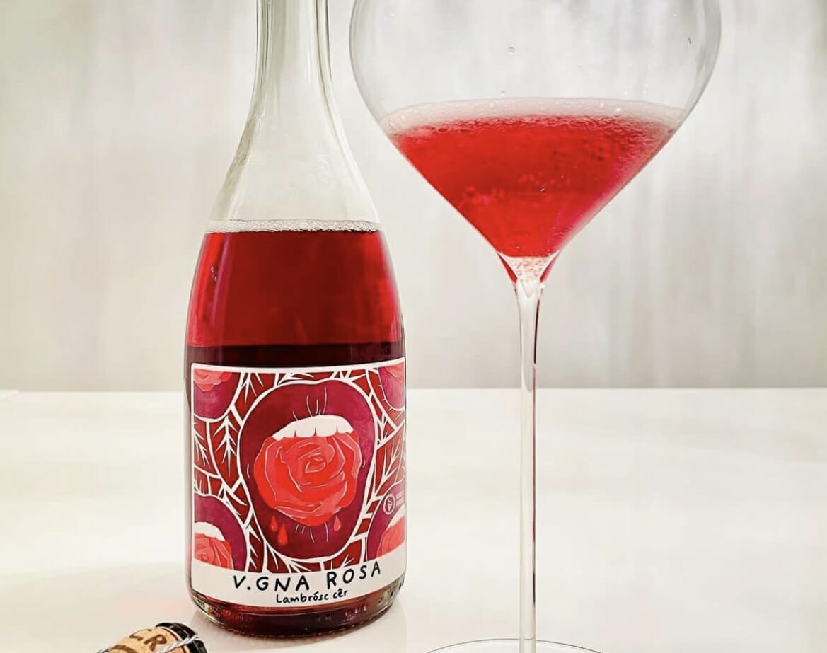 Ci troviamo nella cantina Vitinicola Fangareggi, e assaggiamo il loro Lambrusco “Vigna Rosa”: un vino che nasce da un blend di uve, Lambrusco di Sorbara, Fortana e Pinot Nero.