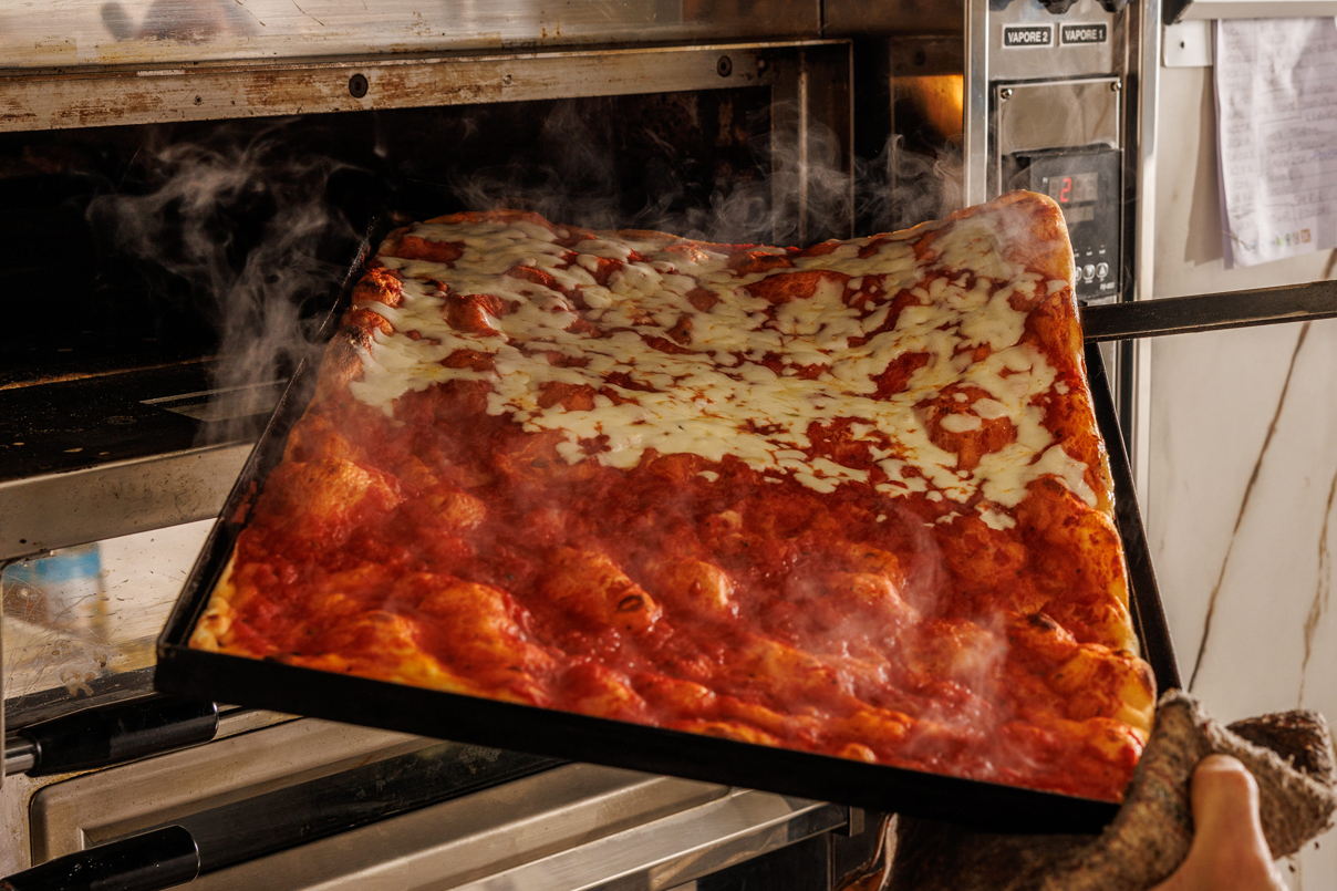L’esperienza maturata nel tempo dai due si traduce in un impasto realizzato con pochissimo lievito, con una lunga lievitazione (tra le 24 e le 48 ore); ne deriva un prodotto leggero e altamente digeribile, cotto alla perfezione (altro aspetto spesso poco considerato, che al contrario qui diventa un elemento chiave), reso unico dagli ingredienti che vanno a guarnire il sopra (o il ripieno) delle diverse teglie.