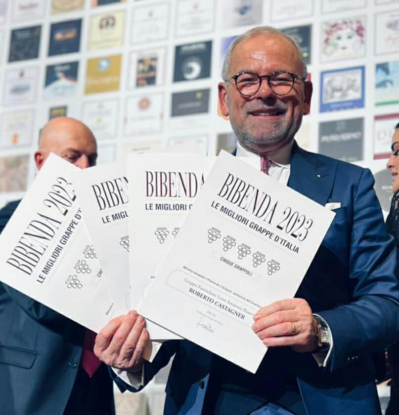 Roberto Castagner ritira a Roma i 5 Grappoli Bibenda per 4 delle sue più importanti referenze: «Questi riconoscimenti non solo ci gratificano, ma confermano i nostri sforzi nel cercare di dare il massimo e ci motivano nel ricercare sempre la massima qualità»