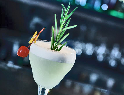 Inserire tutti gli ingredienti nello shaker tranne l’albume d’uovo e shakerare energicamente per circa 10 secondi con abbondante ghiaccio. Eliminare quindi il ghiaccio, aggiungere l’albume d’uovo, proseguire con un Dry Shake per altri 10/15 secondi e versare il drink nel bicchiere. Decorare con un rametto di rosmarino, un twist di limone del Garda e una ciliegina.