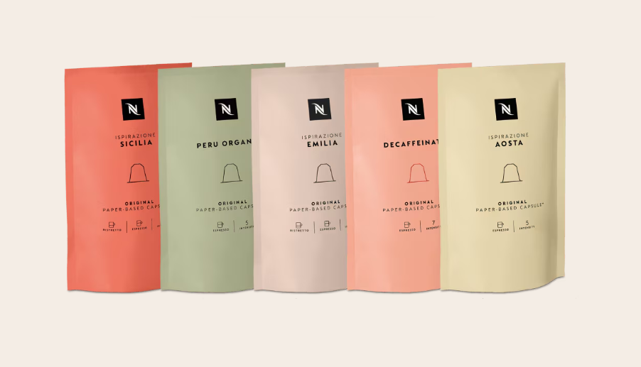La nuova collezione comprende cinque nuovi caffè, tra cui uno biologico e uno decaffeinato, creati appositamente per le capsule compostabili a base di carta: Ispirazione Sicilia, Ispirazione Emilia, Ispirazione Aosta, Peru Organic e Decaffeinato.