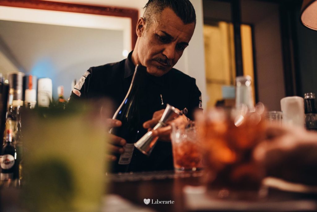 “Sono appassionato di storia, ho avuto la fortuna di poter creare cocktail con il nostro distillato italiano, la grappa, e altri drink in onore del futurismo. Fino a 38 anni facevo anche altri lavori, sono stato responsabile gestione umane, a livello locale, di Fiat auto. Per due anni sono stato nell’Arma dei Carabinieri. Poi ho deciso di dedicarmi completamente a questo mondo. Ho girato molto, mi sono approcciato ai grandi barman, da Rimini, a Roma, Milano. Sono orgoglioso di quello che faccio, perché lo faccio con dedizione e passione. Per me questo lavoro vuol dire viaggiare alla scoperta di terre, prodotti e tradizioni diverse, e vuol dire anche far scoprire alle persone nuovi mondi, perché quando crei un drink lavori sui diversi sensi, cerchi di esaltarli tutti”.