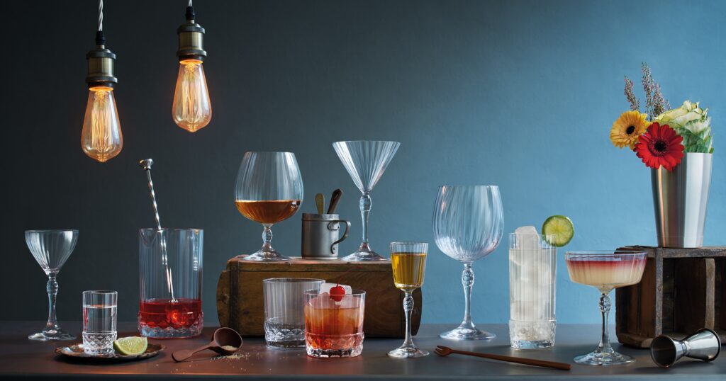 • La collezione Speakeasies Swing, che ci riporta indietro agli Anni Ruggenti, nasce per offrire differenziate soluzioni alle richieste sempre più esigenti del bere miscelato; una proposta raffinata di calici e bicchieri per valorizzare i cocktail fino ai grandi classici della tradizione internazionale.