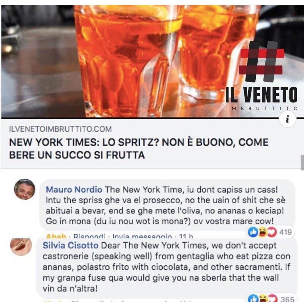 La pagina facebook Il Veneto Imbruttito ha invitato a commentare in veneto/inglese con tag al The New York Times. Il risultato è tutto da ridere: “The New York Time, Intu the spriss ghe va el prosecco, no ananas o keciap!”