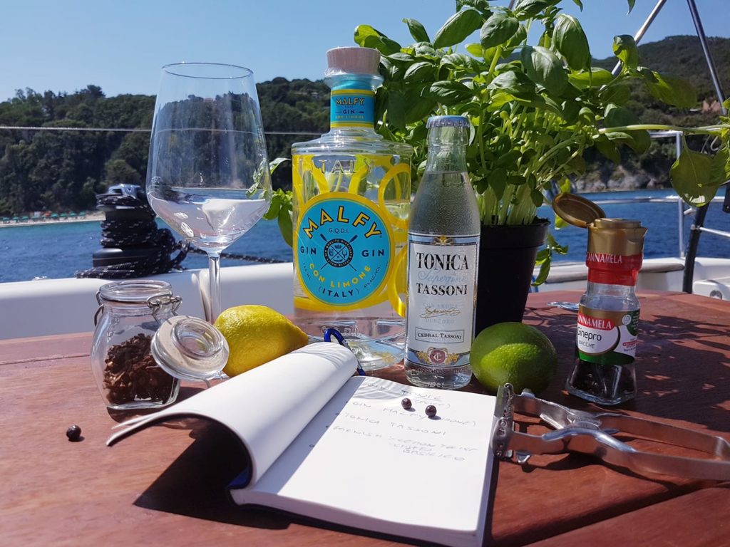 Negli ultimi anni mi è venuta fuori quest’esigenza di tornare a preparare cocktail, unendo l’altra passione che non riuscivo a coltivare per il poco tempo a disposizione, che è quella della barca a vela. Io ho iniziato tanti anni fa, ho preso la mia patente nautica, ho fatto i miei corsi, e avendo poco tempo a disposizione di giorno – perché lavoro attualmente per una torrefazione di Modena, abbastanza conosciuta come trainer – mi sono detto: come faccio ad uscire un po’ di più in barca a vela, e soprattutto perché le persone dovrebbero uscire con me? Quindi ho formulato l’idea dei week end, dal venerdì alla domenica sera dove io noleggio la barca, in Toscana, o in Liguria, in direzione Capraia, Isola d’Elba e Cinque Terre, Golfo dei Poeti. Per differenziarmi dagli altri skipper ho pensato a caratterizzare queste uscite in barca a vela facendo cocktail, in orario aperitivo – tramonto, e alla mattina ci ho aggiunto anche il discorso caffè e cappuccino che è sempre molto apprezzato in fase di risveglio.