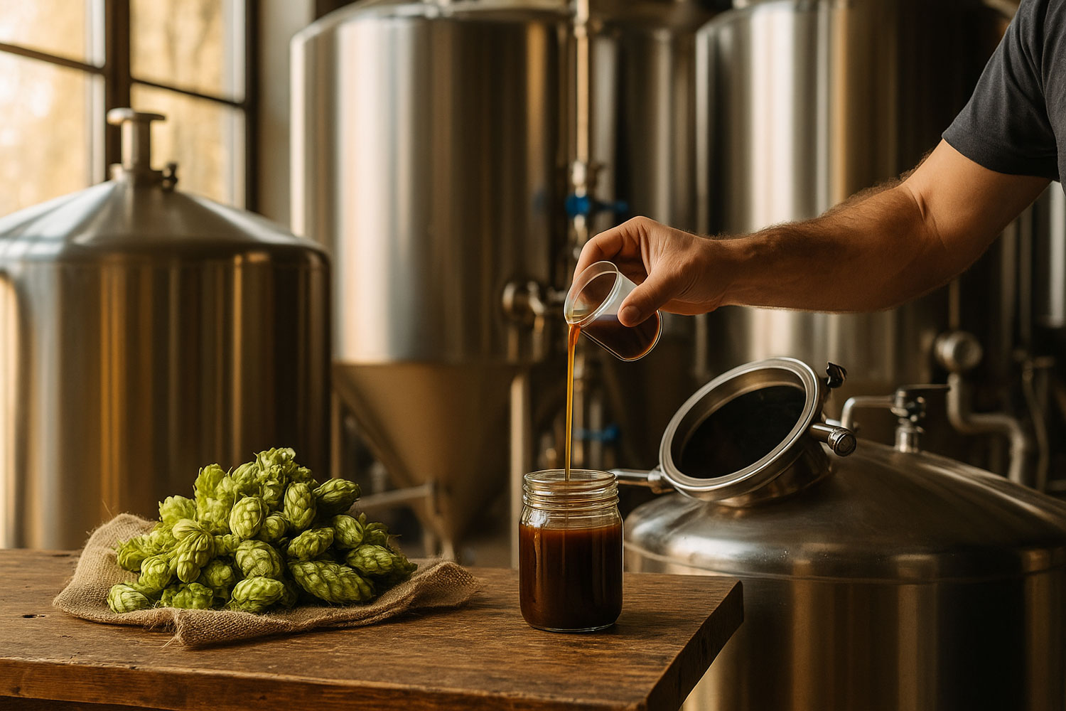 Accanto a coni e pellet, oggi trova spazio una nuova forma: il luppolo liquido. Grazie a processi tecnologici mirati, concentra le sostanze attive in un formato fluido, facile da gestire e altamente performante.