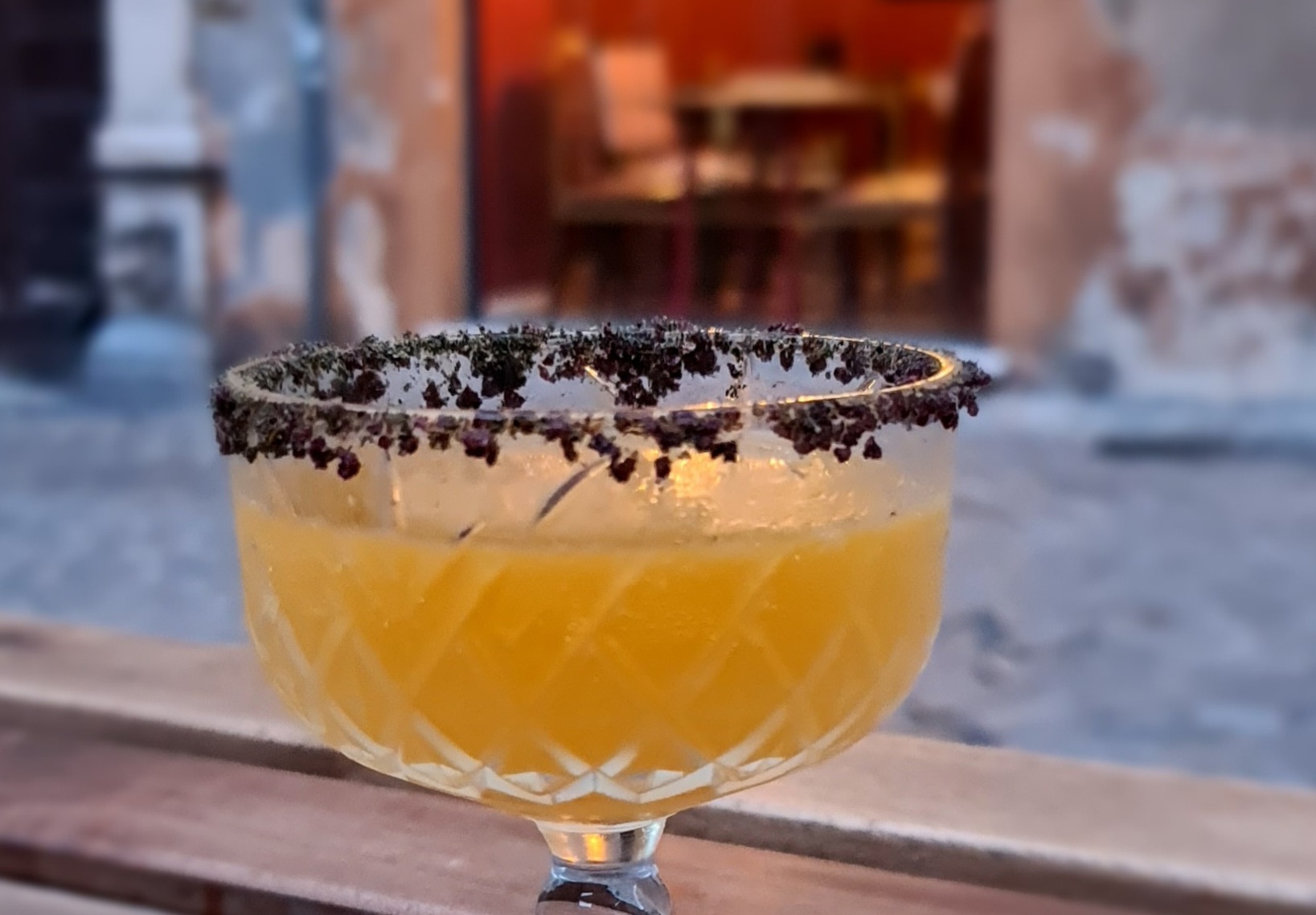 2. Questo drink va servito in coppetta classica o coppa sombrero con crusta di sale su metà orlo del bicchiere.