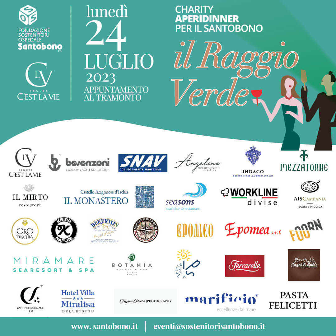Il charity aperidinner party per il Santobono sarà ospitato da TENUTA C’EST LA VIE,Via Pietra Brox 51 – Forio Ischia (NA), lunedì 24 luglio 2023 dalle 19.30 alle 23.30.