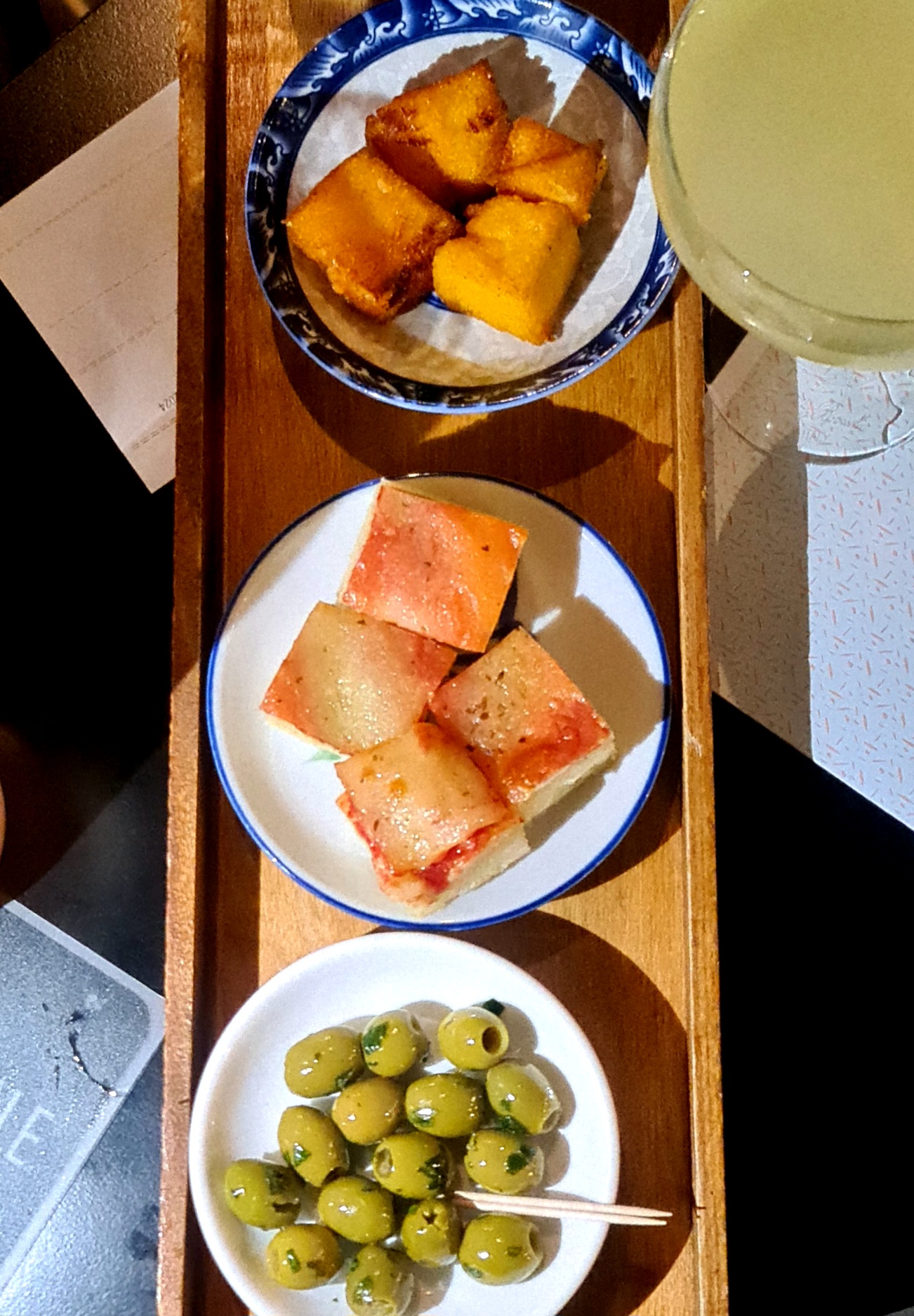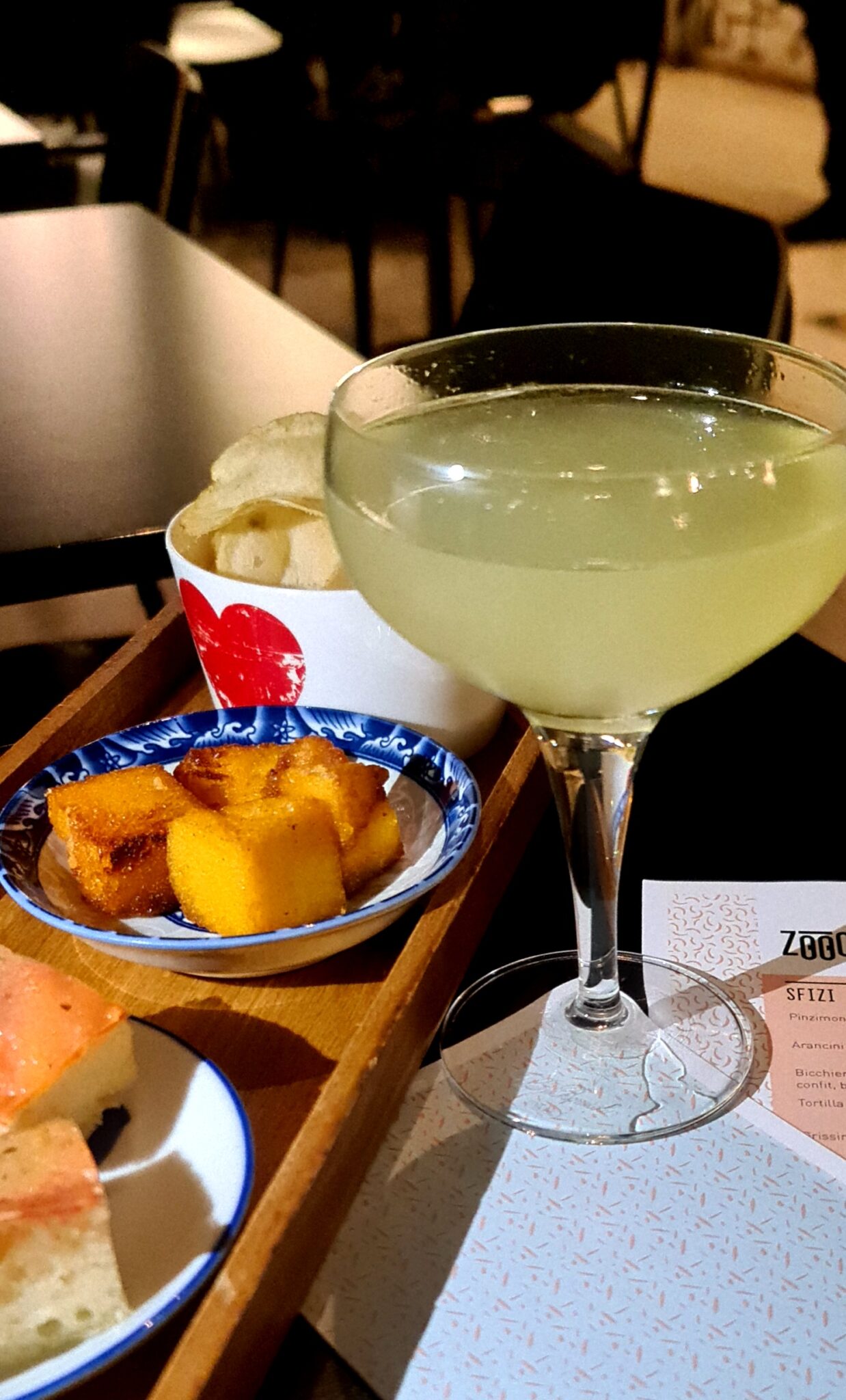 Per l’aperitivo, i drink arrivano accompagnati da un gradevolissimo trittico di appetizer preparati in casa. L’era dell’happy hour – lo abbiamo già detto – è ormai un ricordo lontano. Per fortuna.