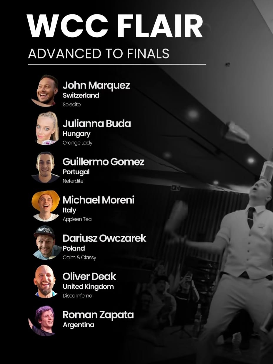 Per quanto riguarda il Flair, oltre a Michael Moreni sono passati in finale John Marquez per la Svizzera, il portoghese e idolo di casa Guillermo Gomez, la ungherese Julianna Buda, che a una grande abilità unisce la spettacolarità di movenze da ginnastica ritmica (di cui è stata campionessa in passato) oltre a un’indubbia bella presenza, Oliver Deak dalla Gran Bretagna, Dariusz Owczarek dalla Polonia nonché il campione mondiale 2023, l’argentino (ma da anni italiano d’adozione) Roman Zapata, altro autentico fenomeno del flair di fama mondiale.