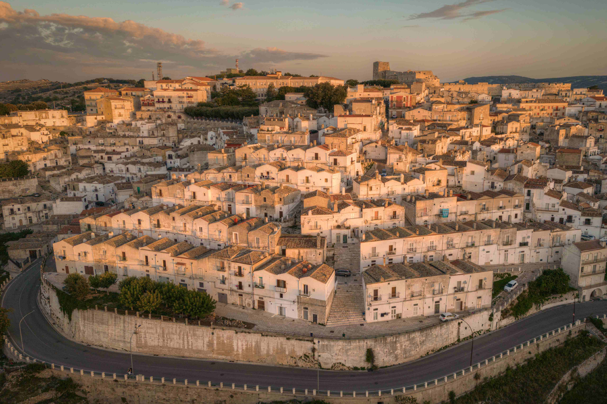 Una natura carsica fitta di grotte e anfratti naturali e un’urbanistica medievale. Un tessuto urbano tutto bianco, serrato quasi, e intricato come un merletto.