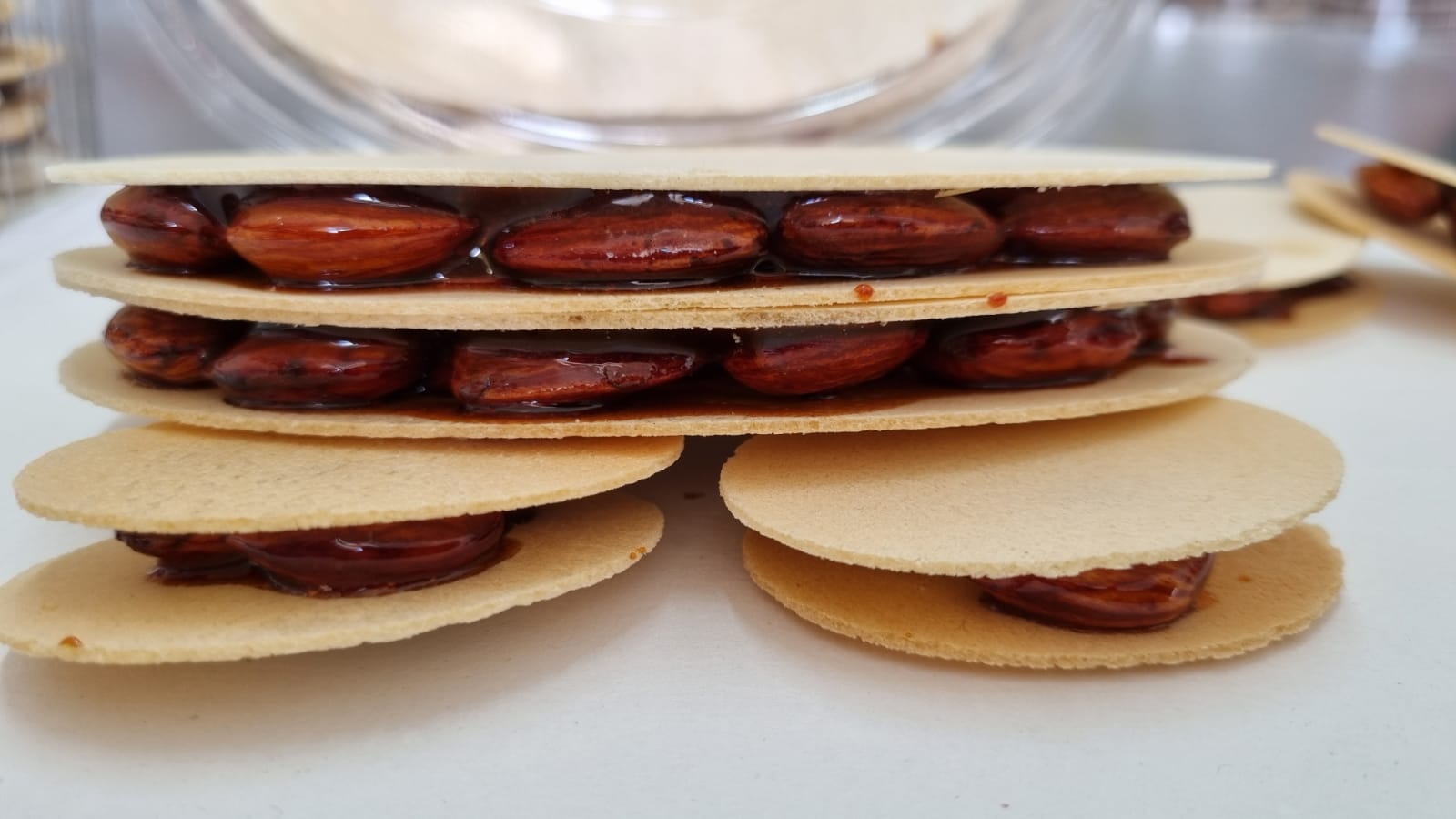 La leggenda narra che un giorno nelle cucine del Monastero della Trinità di Santa Chiara, mentre alcune monache preparavano l’impasto per le sacre ostie, delle mandorle accidentalmente caddero in una ciotola di miele caldo, appena cotto. Una di loro, accortasi del fatto, non avendo all’istante alcunché per raccoglierle, pensò bene di servirsi di due pezzi di ostie; le mandorle, ricoperte di miele, si attaccarono alle ostie formando un unico composto. Cosi nacque l’ostia piena, dolce tipico, particolare nella forma e dal gusto delicato.