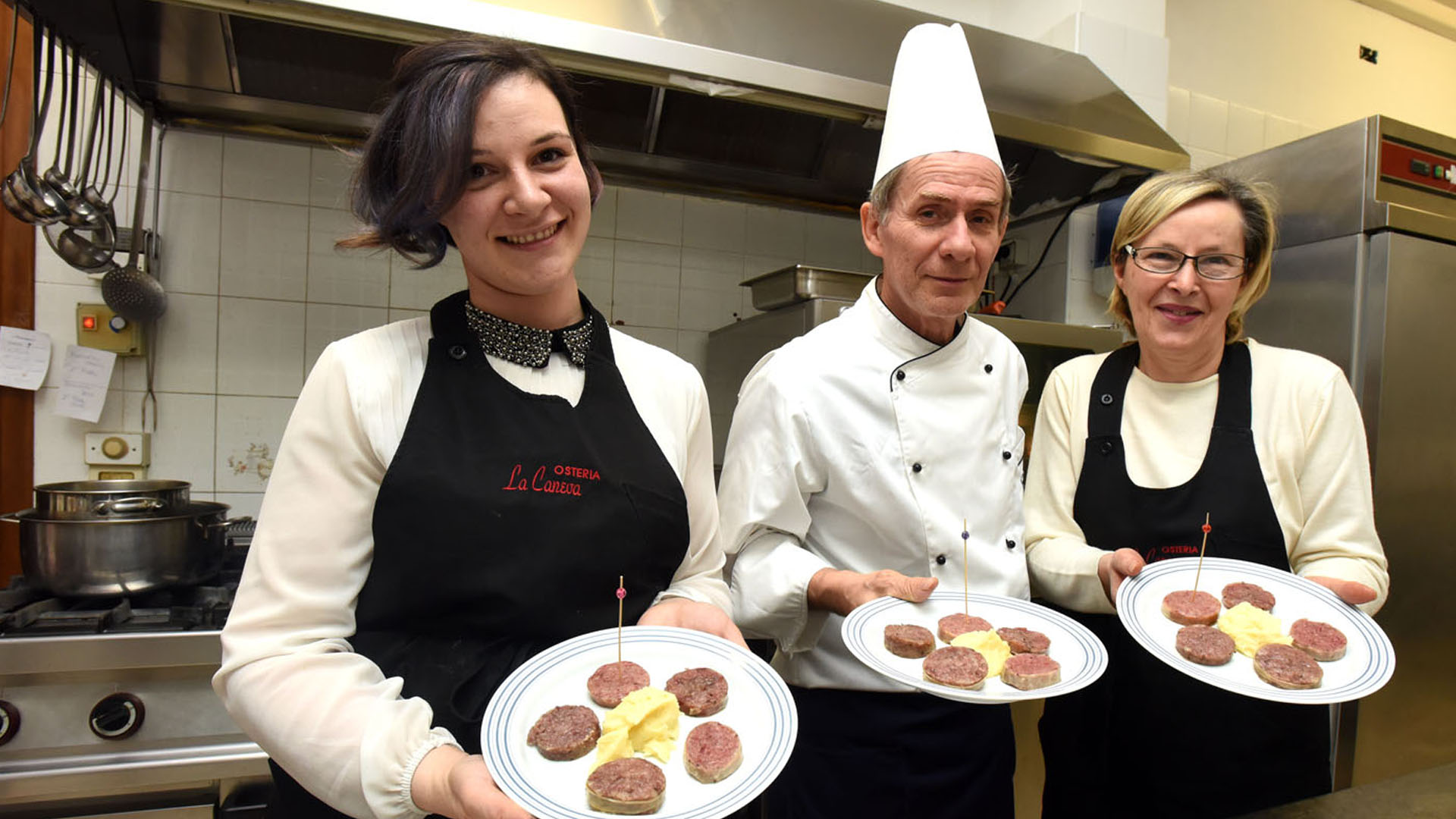 Il titolo di campione appartiene a Davide Mion, chef della locanda “Alla Speranza” di Castelfranco Veneto, noto per la sua rigorosa adesione alla ricetta tradizionale: cotenna, spolpo di testa, sale, pepe e una lavorazione perfezionata da decenni di esperienza familiare.