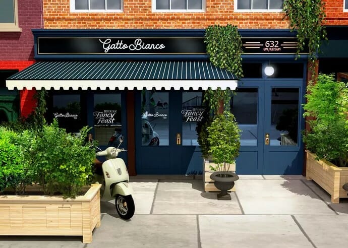 Non è peraltro la prima volta che Fancy Feast serve al pubblico piatti ispirati al cibo per gatti: la scorsa estate il marchio lanciò per due notti a Manhattan il ristorante pop-up Gatto Blanco, il cui menu era basato sulla linea Medleys e includeva branzino al forno, un salmone ispirato all’ossobuco e costolette in stile toscano.