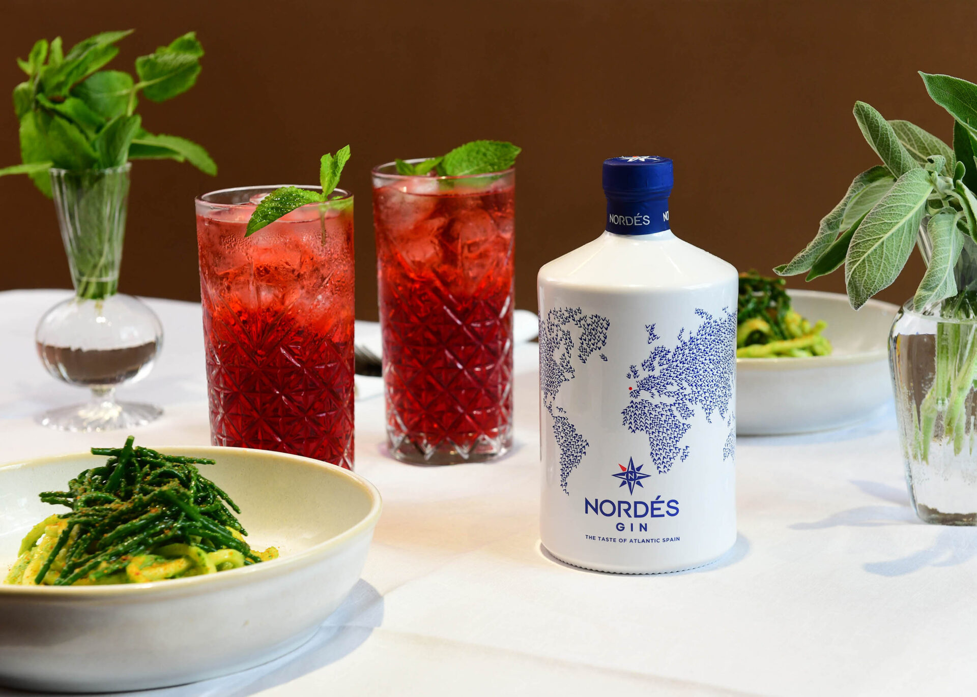 La scelta di promuovere il marchio puntando sulla gastronomia, oltre che sulla mixology, è d’altra parte suggerita proprio dalle inconfondibili note erbacee che caratterizzano Nordés, date dalle sue 11 botaniche (sei della tradizione galiziana – alloro, salvia, salicornia di mare, verbena di limone, eucalipto e menta – e cinque d’oltremare: ginepro, cardamomo, zenzero, ibisco e tè) e dalla distillazione di uva albariño, varietà tipica della Galizia.