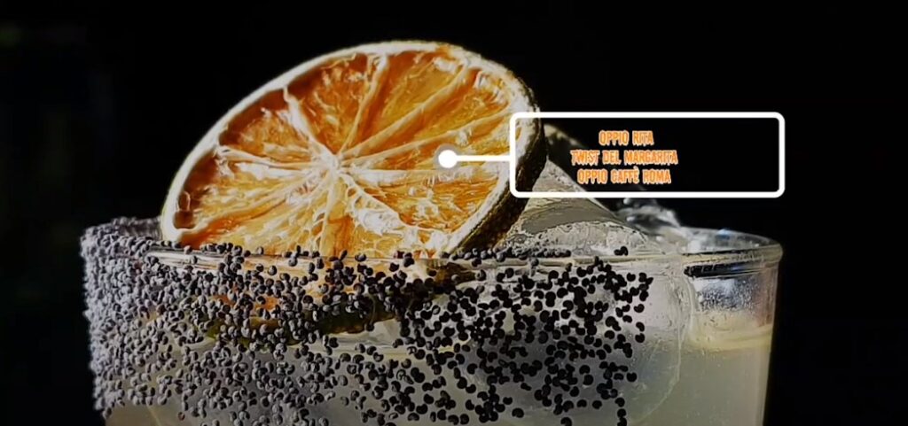 L’Oppio Rita è un cocktail molto richiesto all’Oppio Caffè di Roma. Un drink semplice, efficace, con una crusta di semi di papavero a dare un tocco di complessità
