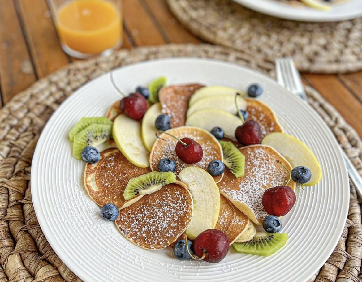 Questi mini pancakes si preparano in 5 minuti e sono perfetti anche per chi va di fretta perché è possibile preparare l’impasto la sera prima e conservarlo in frigo!
