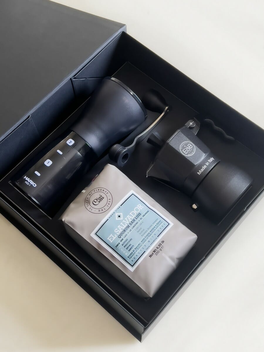 All’interno si trova un kit per preparare un caffè all’insegna della qualità: