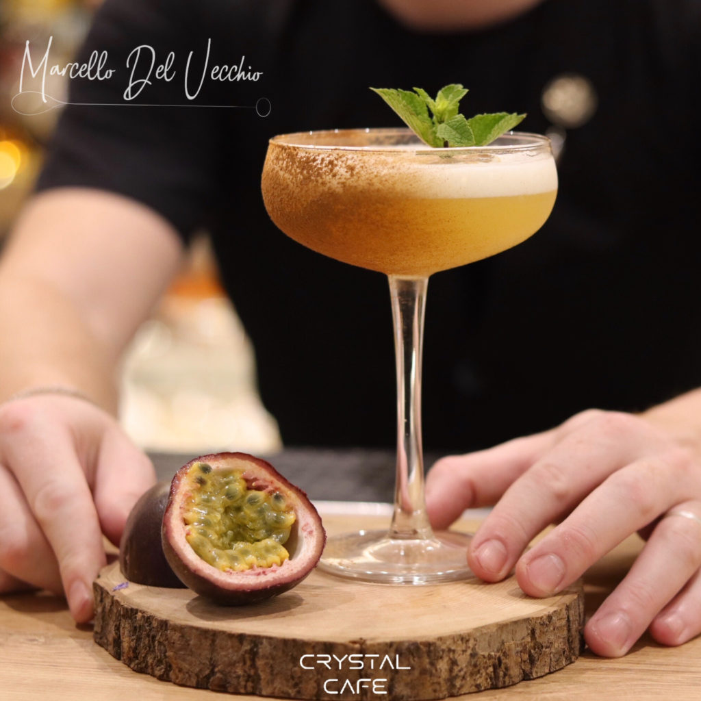 Marcello Del Vecchio, 31 anni, barmanager del Crystal Café di Giugliano in Campania e relatore in corsi di formazione per barman all’ FBS di Napoli, presenta ad ApeTime la ricetta del cocktail “Pisco Sour Maracuja”.