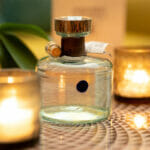 Ricercatezza e qualità si vedono in controluce anche attraverso il vetro delle bottiglie: tutti pezzi unici, in quanto ognuno è soffiato a bocca da vetro riciclato al 100%.