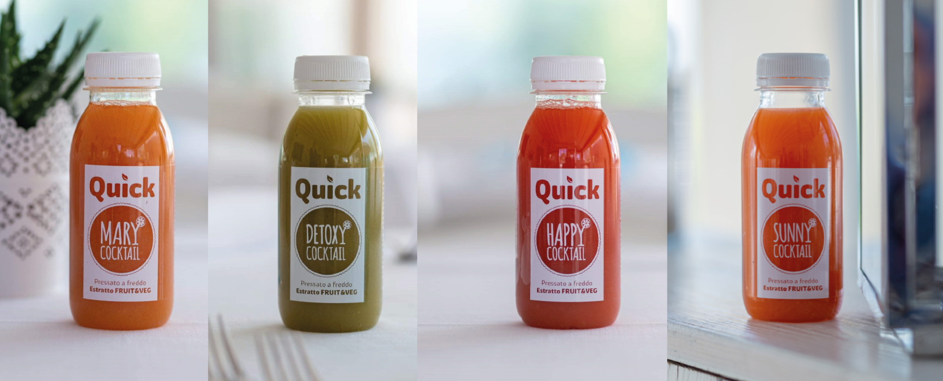 Gli estratti di frutta e verdura Quick, in boccetto, sono creati senza aggiunte di zuccheri, coloranti, aromi o acqua. “La pressatura a freddo utilizzata – informano i produttori – preserva le proprietà organolettiche di frutta e verdura, contrariamente a quanto accade per la pastorizzazione a caldo impiegata nei normali “succhi”. Il trattamento con l’HPP (High Pressure Processing), inoltre, è un processo tecnologico applicato commercialmente dagli anni ’90, che conserva le caratteristiche originali del prodotto”.