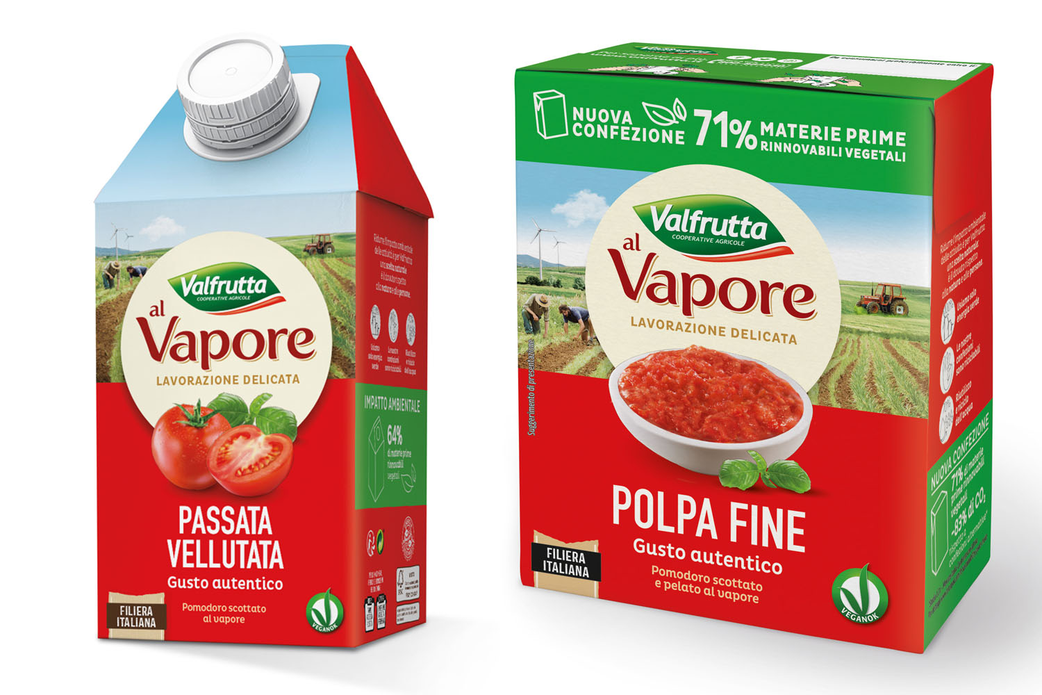 La prima tappa di questa innovazione nella gamma Valfrutta al Vapore riguarda il restyling grafico della Passata Vellutata in brik da 1000 gr e della Polpa Fine in formato Tetra Recart da 390 gr. Un rinnovamento che ha permesso di uniformare tutte le gamme “rosse” a marchio Valfrutta, con l’obiettivo di ridurre ancora di più l’impatto sull’ambiente.