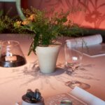 Uno spazio che ha respiro, pause, alternanza di vuoti e pieni, linee ondulate, morbidezze avvolgenti e sinuose, entro cui si muove, come in una coreografia contemporanea, il servizio di sala e l’ospite.