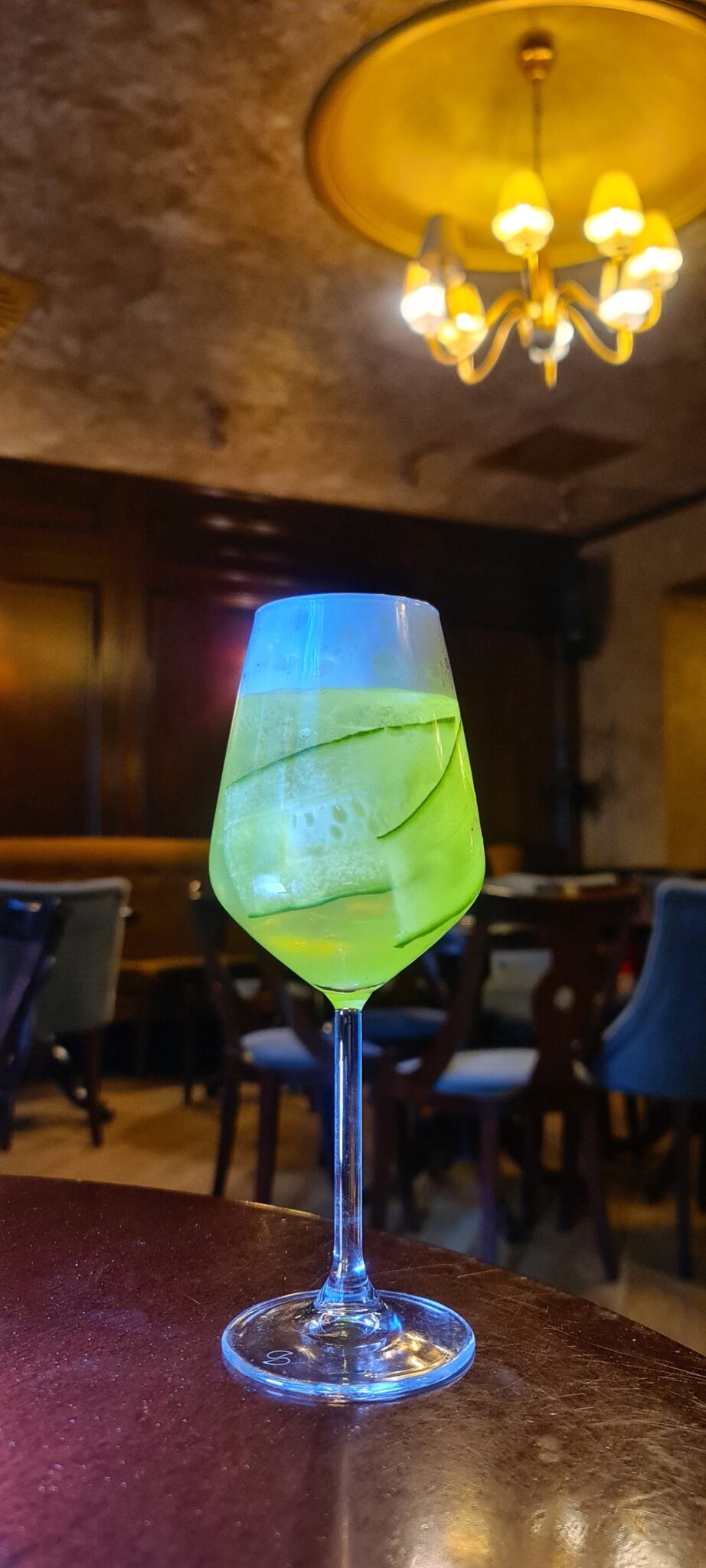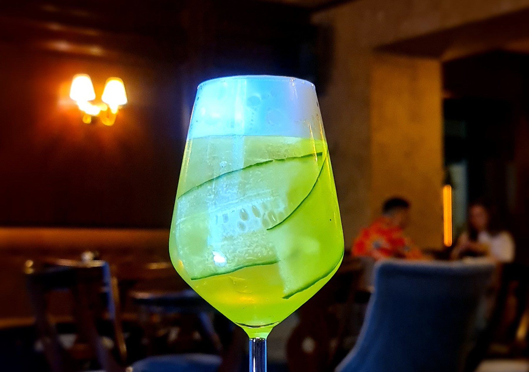 Preparazione: versare il Prosecco nel bicchiere quasi colmo di ghiaccio fino a riempirlo circa per un terzo; mettere nello shaker rum, Midori, limone, bitter al rabarbaro e la fetta di cetriolo e shakerare, quindi filtrare con un fine strain nel bicchiere con il Prosecco; completare strizzando uno zest di limone sopra il bicchiere per estrarne gli olii essenziali e aggiungendo il top di schiuma alla citronella.