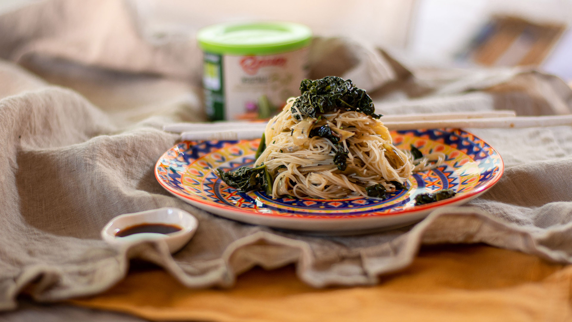 Scolate gli spaghetti di riso e, se necessario, tagliateli leggermente con una forbice per facilitare la mantecatura. Versateli direttamente in padella con le verdure e saltate il tutto a fiamma viva per qualche minuto, mescolando bene. Spolverate con un altro cucchiaino di Granulare Vegetale Bio Bauer per esaltare ulteriormente i sapori.