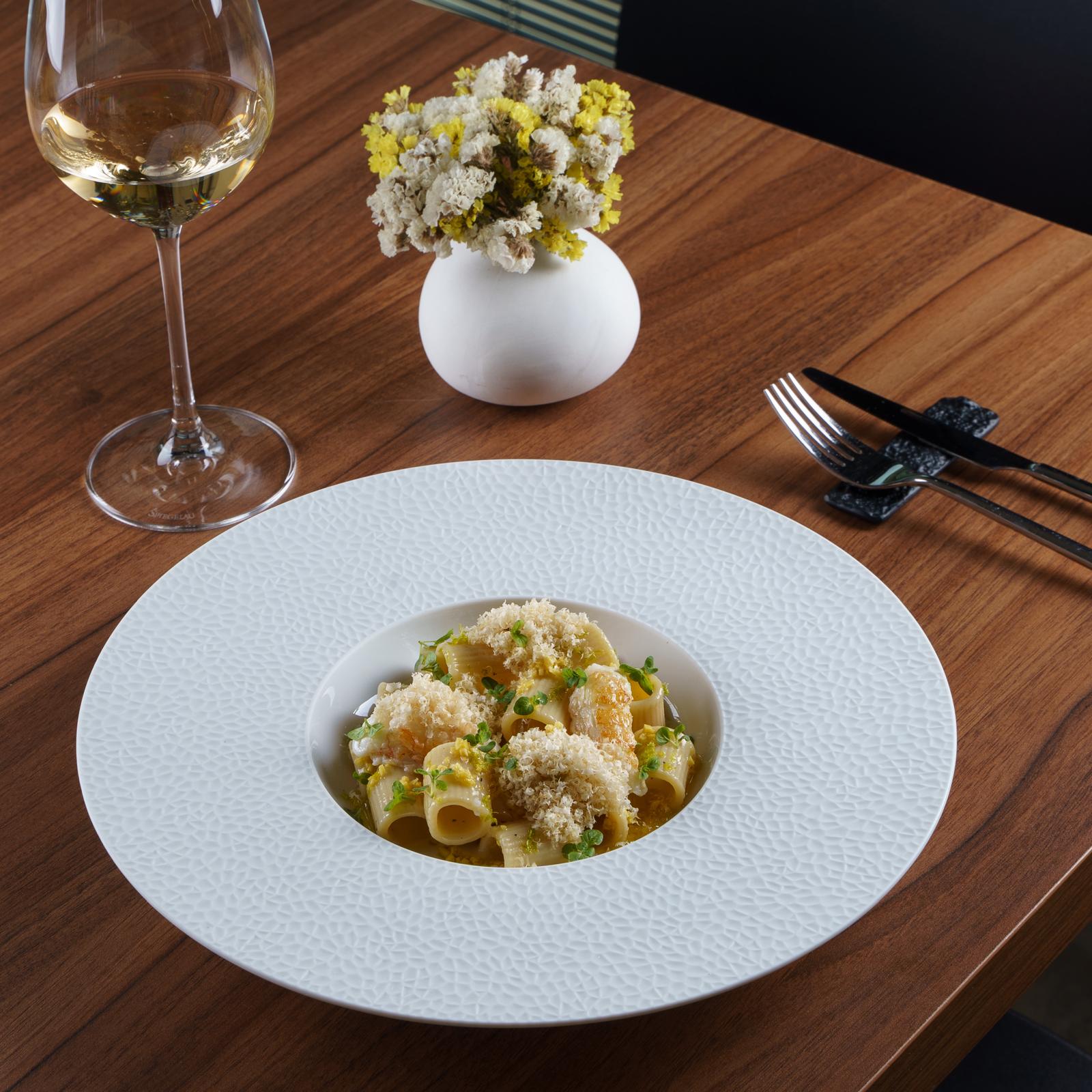 Tra gli antipasti, il carpaccio di ricciola con salsa di erbe fresche è un must-have che rimane sempre fisso, mentre nella sezione dei primi piatti spiccano con molto orgoglio le mezze maniche, scampo zenzero e nocciole e il risotto acquerello con pesto di prezzemolo, triglia di scoglio e limone bruciato.