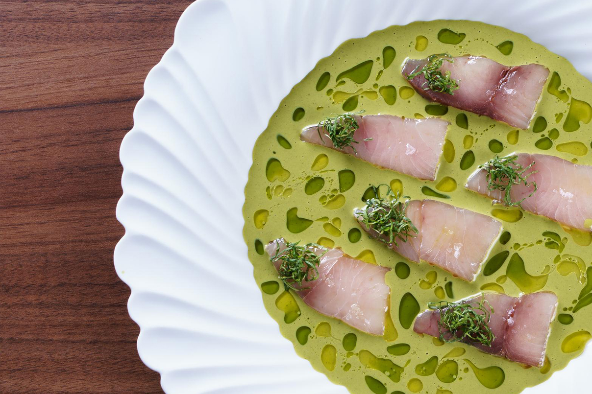 Non c’è un percorso degustazione, ma solo un appetitoso menu à la carte, in cui lo chef propone una moderna cucina mediterranea basata su prodotti stagionali di qualità, con pesce e crostacei come protagonisti indiscussi. Agrumi e alcune spezie, come lo zenzero, sono usati con parsimonia e “buon senso”, così come le erbe aromatiche che aggiungono un tocco di freschezza e vivacità. L’accoglienza è calda in un ambiente contemporaneo, con una profusione di legno e piante.