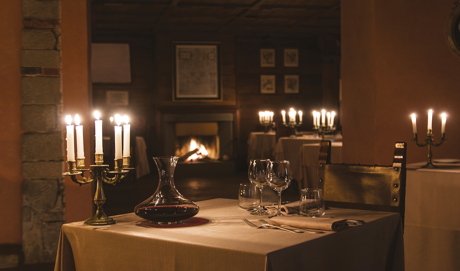 A mezz’ora da Gubbio, un maniero medievale ospita una sala da pranzo in pietra e legno, illuminata da candele e camino: l’Accomanducci Hall. La cucina guarda al territorio — tartufo, legumi, carni e pasta fresca — con una filologia che non rinuncia al tocco creativo. La cornice è quella di un relais immerso nelle colline, perfetto per celebrare ricorrenze in discrezione. Informazioni ufficiali su Castello di Petroia – Accomanducci Hall.
