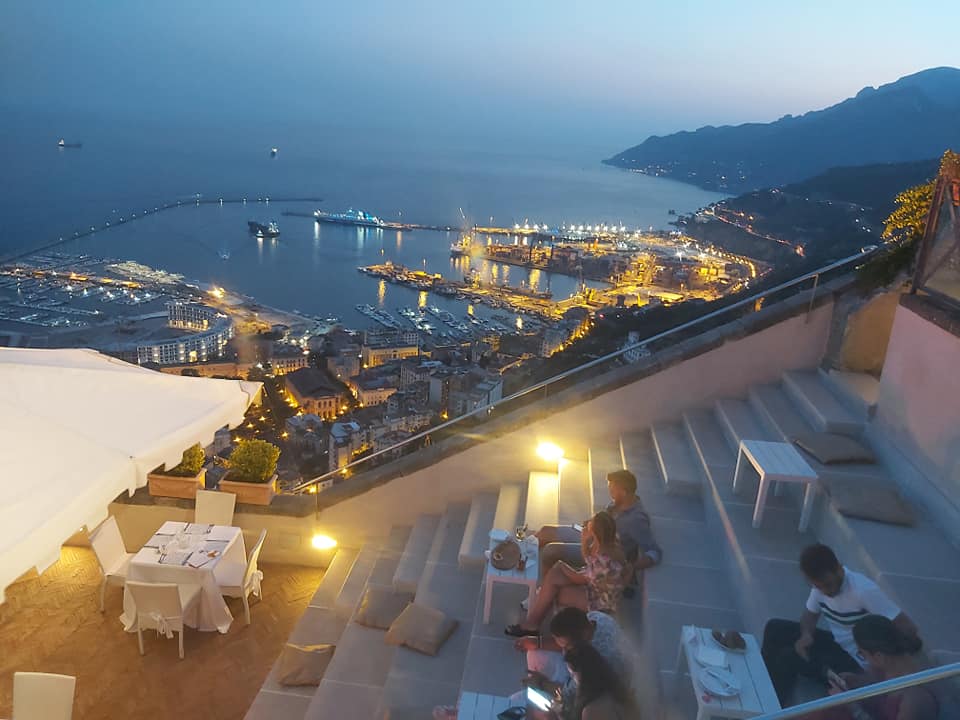 Un pezzo di storia della città, una bellissima terrazza dove godersi il panorama del golfo di Salerno, e un aperitivo raffinato, ma anche una cena o dopocena.
