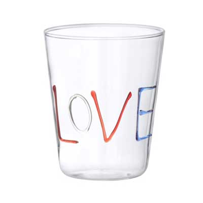 BICCHIERE CON SCRITTA AMORE IN VETRO BOROSILICATO (380 ML)