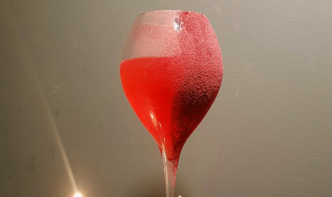 Rivisitazione del Rossini, il cocktail rientra nella categoria Sparkling. Scenico nella presentazione, ha un gusto morbido ma non dolce grazie al sapore acidulo del karkadè (ovvero, il calice carnoso del fiore dell’Hibiscus sabdariffa da cui si può ricavare per infusione una bibita dissetante aspra e dal colore rosso intenso).