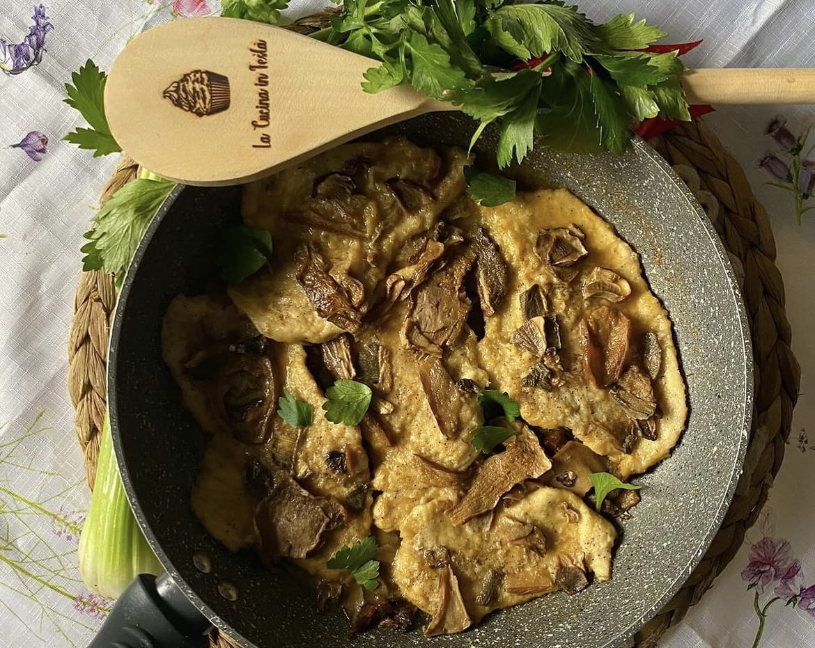 Successivamente puliamo bene i funghi porcini e tagliamoli a fettine,mettiamo poi a cuocere nella padella i nostri funghi fini a doratura.