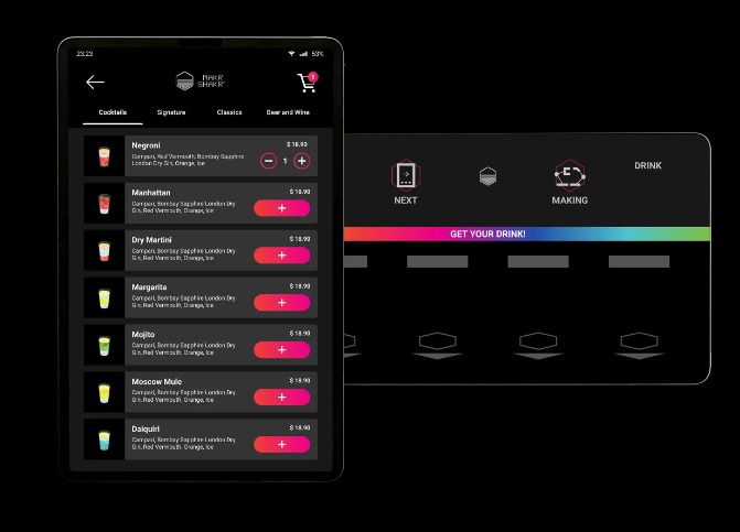 “Robotico” significa che in questo bar i drink (cocktail, ma anche caffè e cappuccini) saranno preparati e serviti da un braccio meccanico comandato da una intelligenza artificiale, in grado di realizzare fino a 60 bevande l’ora sfruttando una bottigliera composta da 70 etichette. Anche gli ordini saranno automatizzati: attraverso una serie di tablet installati nel locale, il cliente inserirà il proprio nome e sceglierà il drink, ottenendo l’indicazione del punto di consegna al bancone in cui potrà ritirarlo pochi minuti dopo, con la possibilità di seguirne la preparazione in tempo reale sul display alle spalle del robot.