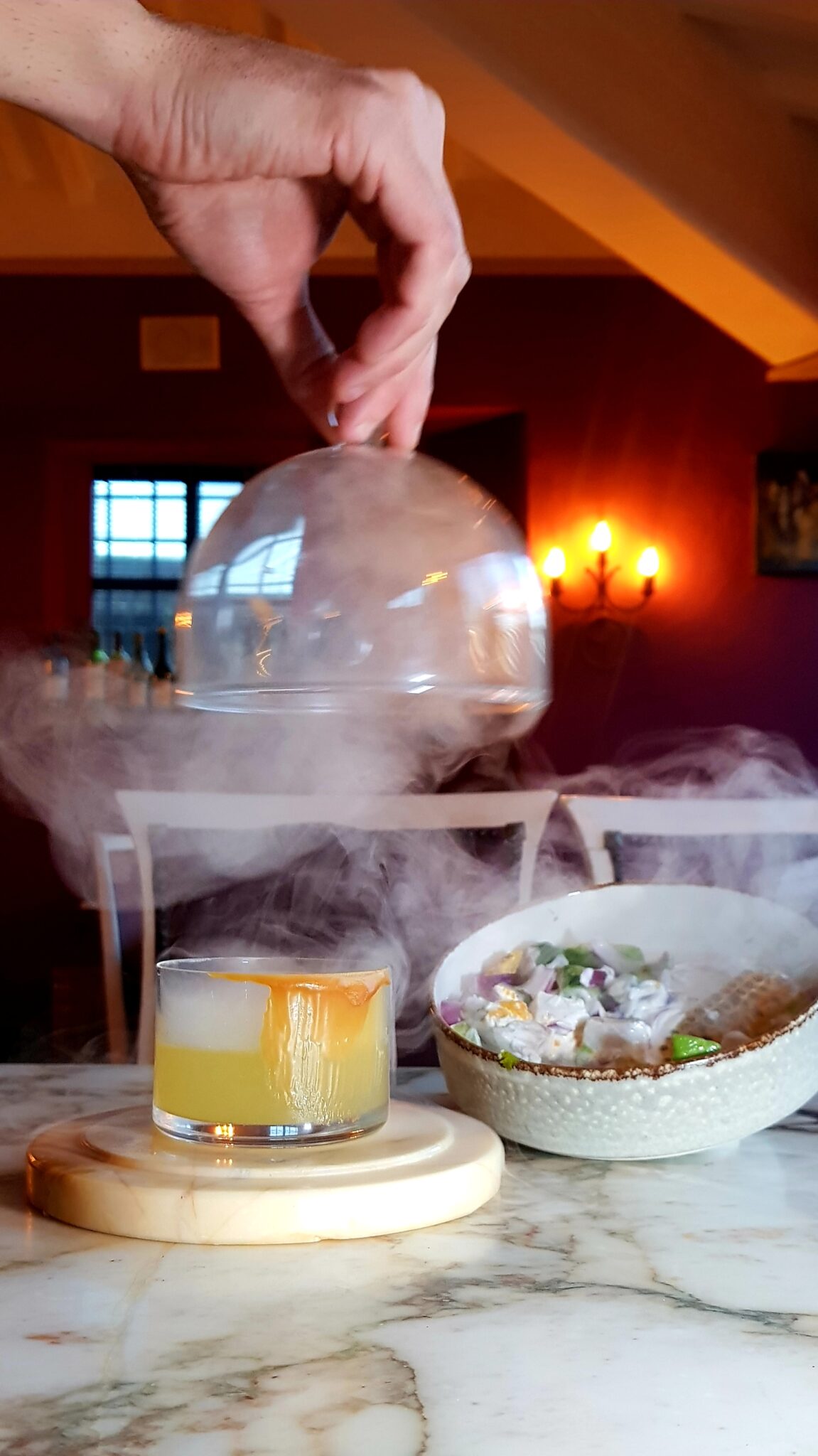 Innanzi tutto abbinamento fra cibi e vini. Abbiamo una cantina di oltre 500 bottiglie e siamo appassionati in particolare di champagne… da accostare ovviamente alle ostriche e le cruditè. Ma anche fra cibi e cocktail: a ogni cliente che si siede al tavolo viene proposta innanzi tutto la drink list, offremdogli la possibilità di cenare con un cocktail, se lo desidera. Tra l’altro, ogni giovedì organizziamo serate basate specificamente sull’abbinameno fra tapas e cocktail. Ma la collaborazione fra bar e cucina non si esaurisce nel food pairing.