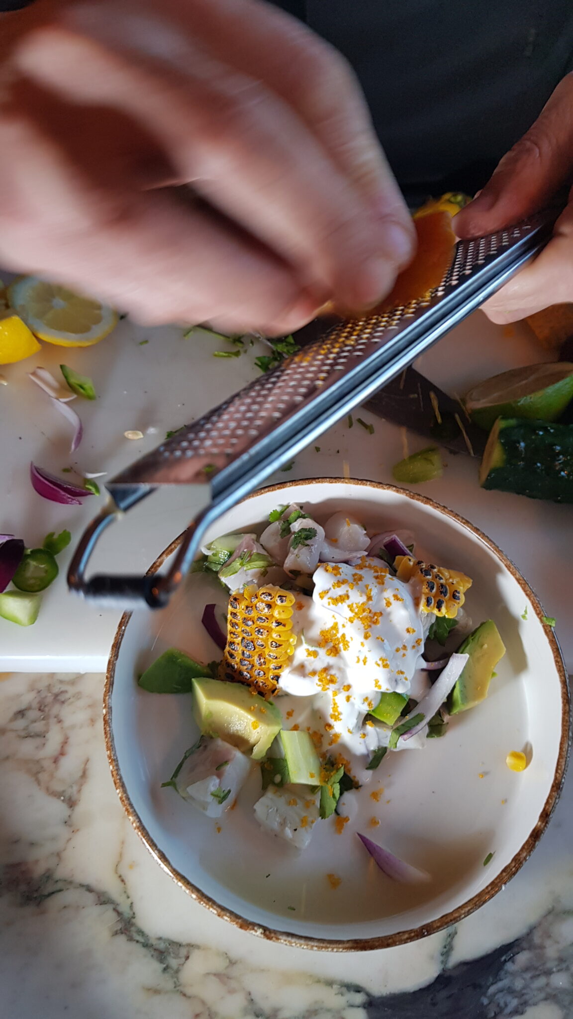 Nella messa a punto delle proposte food e drink scegliamo ingredienti che possano essere utilizzati il più possibile, così da minimizzare gli sprechi. Così, ad esempio, gli scarti di cioccolato sono usati per le guarnizioni dei drink. In quest’ottica, realizziamo anche una birra artigianale, Onda Bionda, unendo al malto d’orzo le scorze d’arancia di scarto. Inoltre abbiamo preparato dei vini fermentati con la frutta di nostra produzione. E di nostra produzione sono anche sciroppi e cordiali utilizzati al bar.