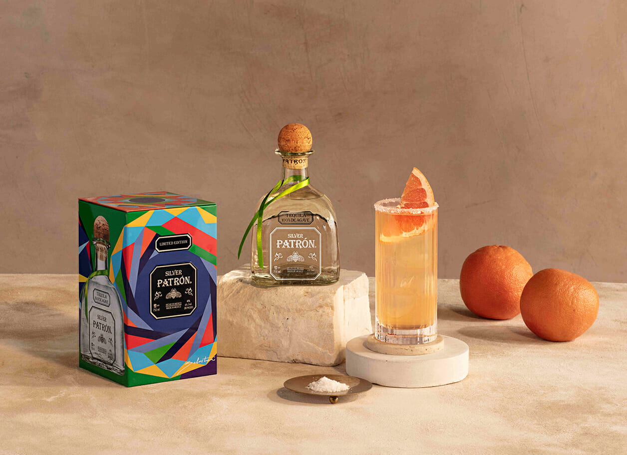 La limited edition include una bottiglia di Tequila PATRÓN Silver che offre sentori di agave dolce, agrumi, banana, mela verde e pepe nero al naso, e risulta morbido, dal gusto di agave fresca, miele, zucca cotta e scorze di agrumi all’assaggio.
