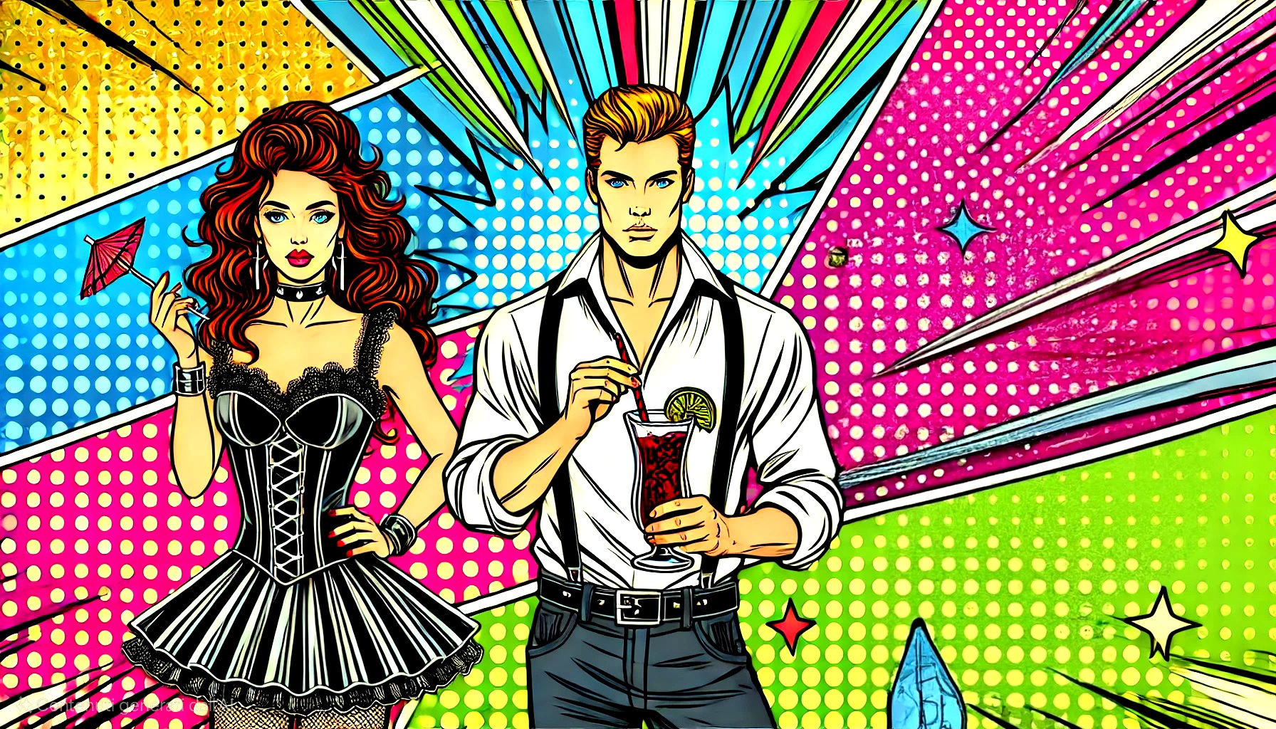 C) Audace e stravagante, con tocchi di colore.