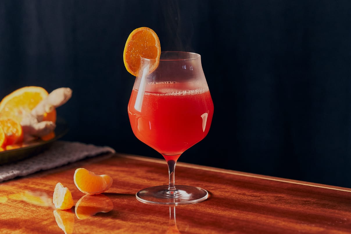 Riscaldare il Martini Fiero, insieme alla ginger beer e al succo d’arancia e mantenerli caldi in una pentola per vin brulé. Versare e guarnire ogni drink con una fetta d’arancia.