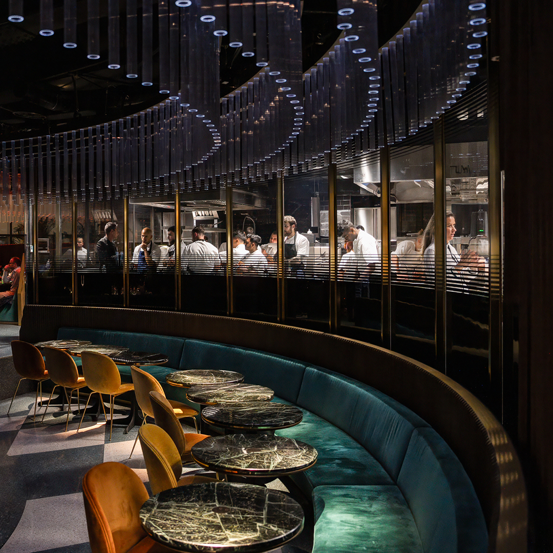 Ostriche, caviale e tartufo dominano il menù, accompagnati da oltre 500 etichette di vini pregiati. Al cocktail bar, invece, spiccano twist on classic e signature drink da abbinare a piatti come arancini al tartufo e pinsa. - Design unico: